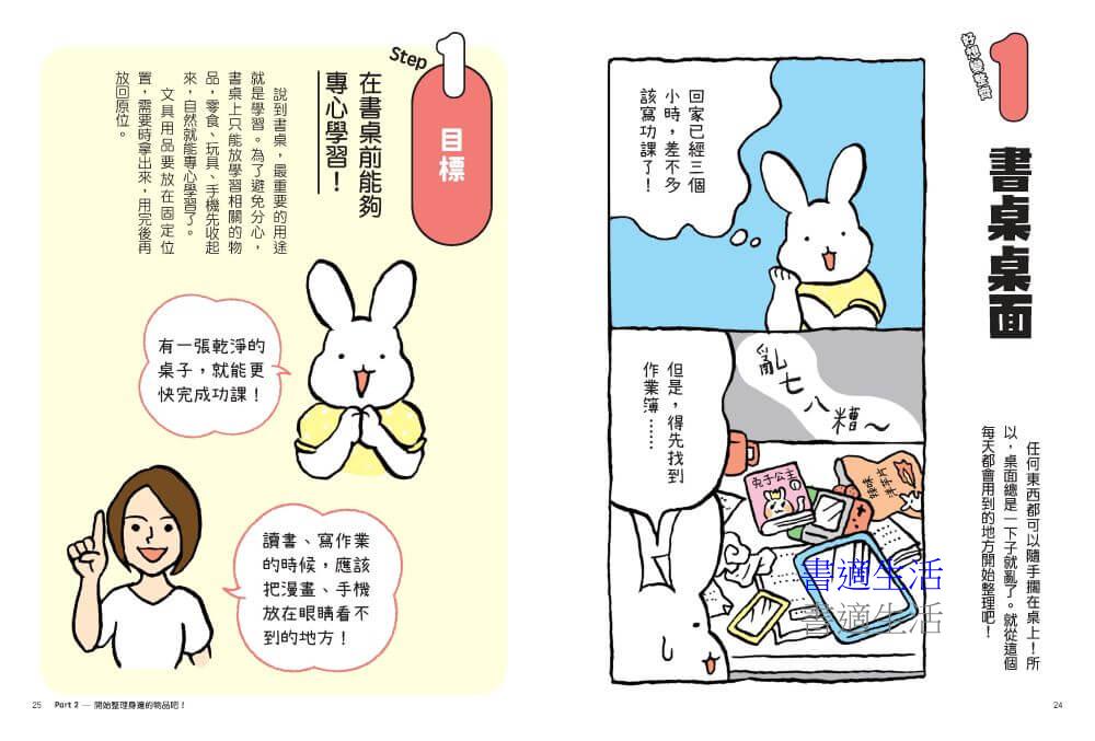 本書透過貼近日常的情境設計漫畫和大量圖解,引導孩子一步步認識自己的整理習慣與性格傾向,不論是什麼樣的類型,只要打造出符合自己性格的收納習慣,就很容易養成持續整理、物歸原位的好習慣。當孩子不再因為「無法達成家長的標準」而感到挫折,而是知道「我適合不同的方法」,就能更有自信的面對生活中的各種挑戰。這樣的引導方式,不僅降低動手整理的心理門檻,也讓孩子更願意主動嘗試,而不是被動完成大人的要求。