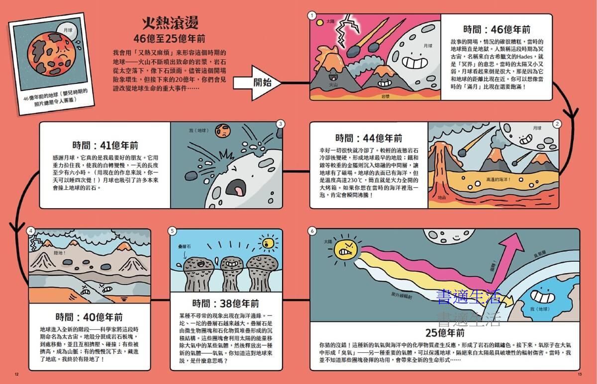 46億年的地球科學,像一齣高潮迭起,絕無冷場的電影——由「地球」領銜主演,並且邀請地球的24組好朋友,介紹地球的小故事,笑哏不斷,絕對讓讀者留下印象深刻的記憶點。
