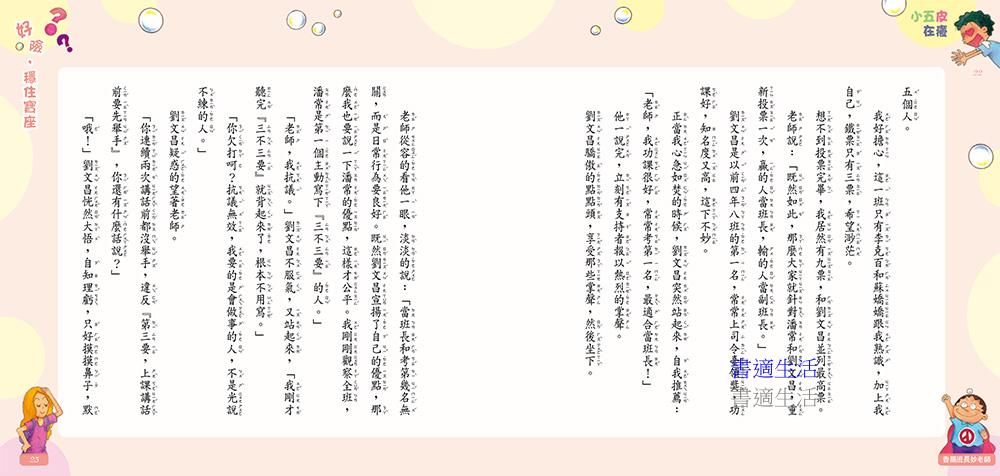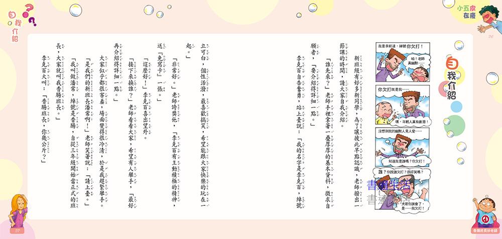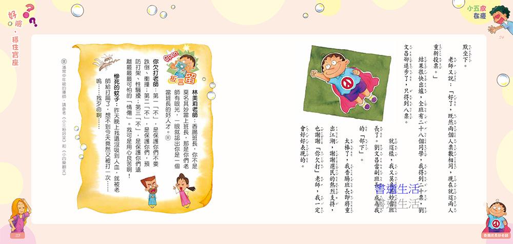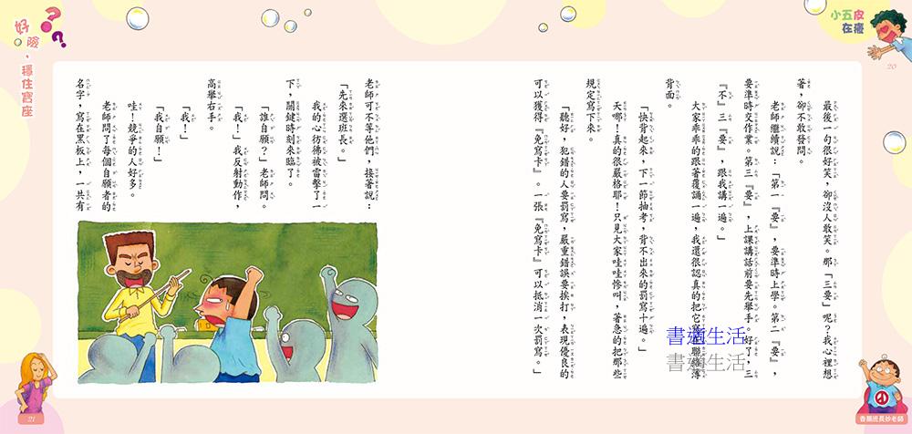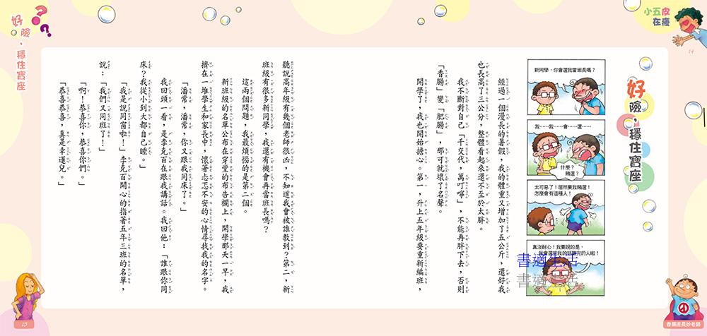 每一篇故事還搭配四格漫畫,「笑」果加倍,讓小朋友在歡笑中學習香腸班長的努力,也看見老師的用心良苦。此外,還能藉由討論書中的事件,讓孩子省思如何自己管理自己,變得更加成熟懂事喔!