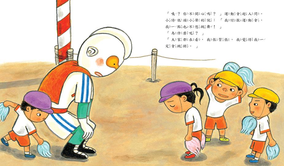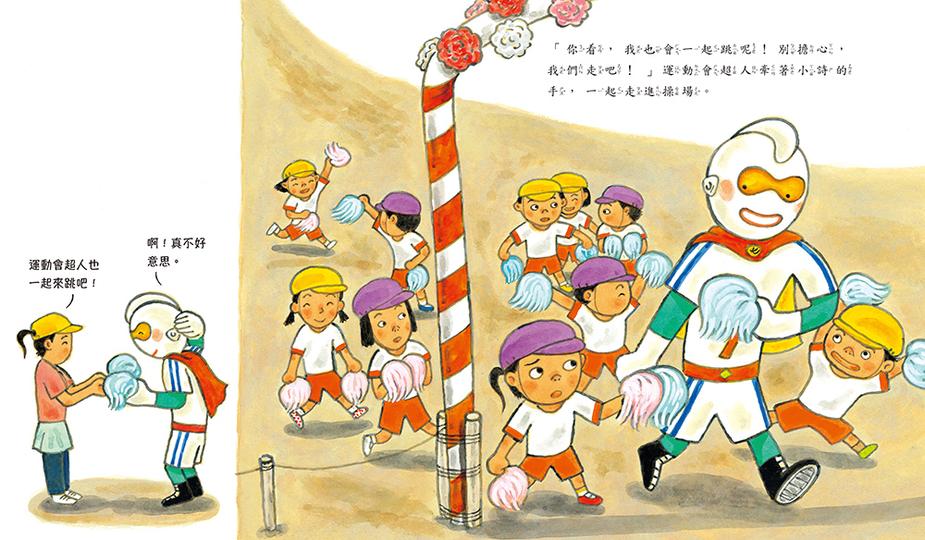 其實,小詩一直擔心自己做不好,但即使是超人也會出糗,也會跌倒,這些不完美的表現,並不影響超人參加運動會的快樂,那為什麼不試試看呢?任何事情,只要願意嘗試,參與的本身就是最棒的體驗了!