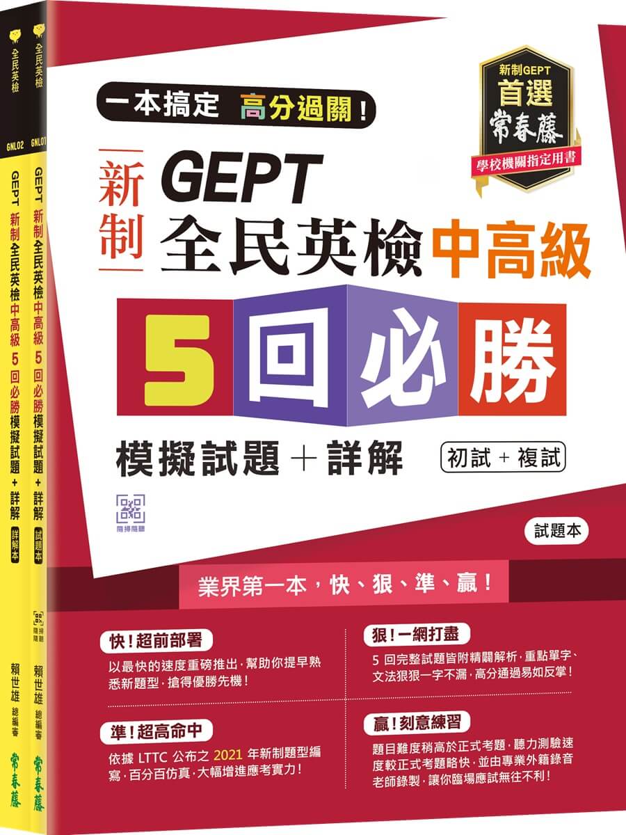 一本搞定 高分過關!GEPT 新制全民英檢中高級5 回必勝模擬試題+詳解(初試+ 複試)