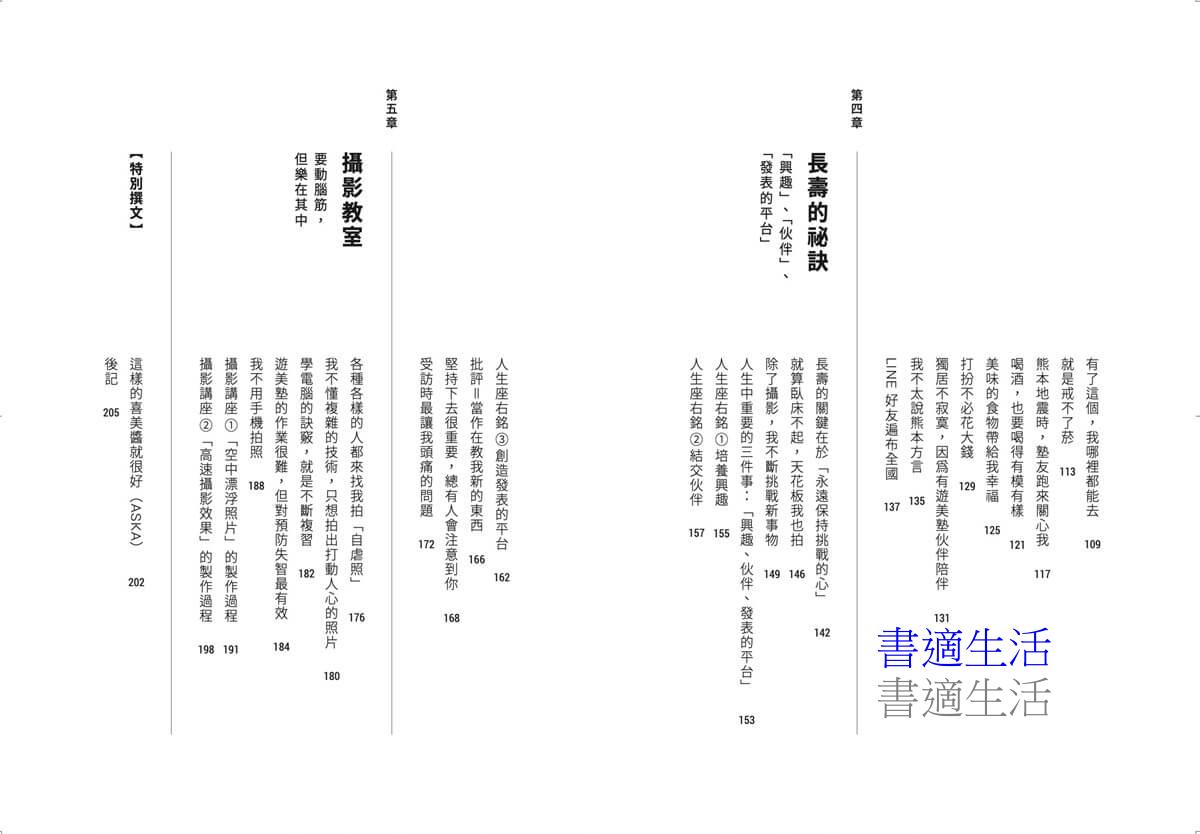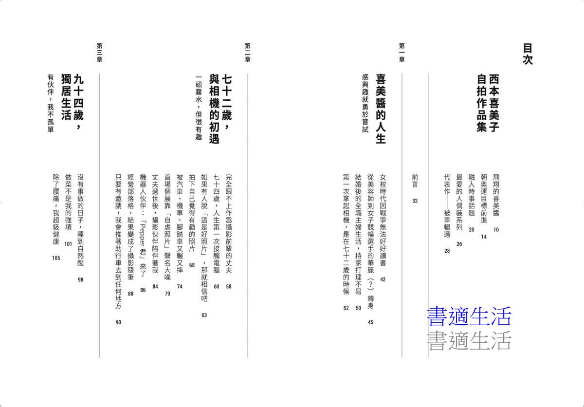 本書收錄了喜美醬至今累積的著名攝影作品,並以散文分享她的日常生活與長壽祕訣。書中還公開了「喜美醬風格照片後製技法」的技巧與創作過程!