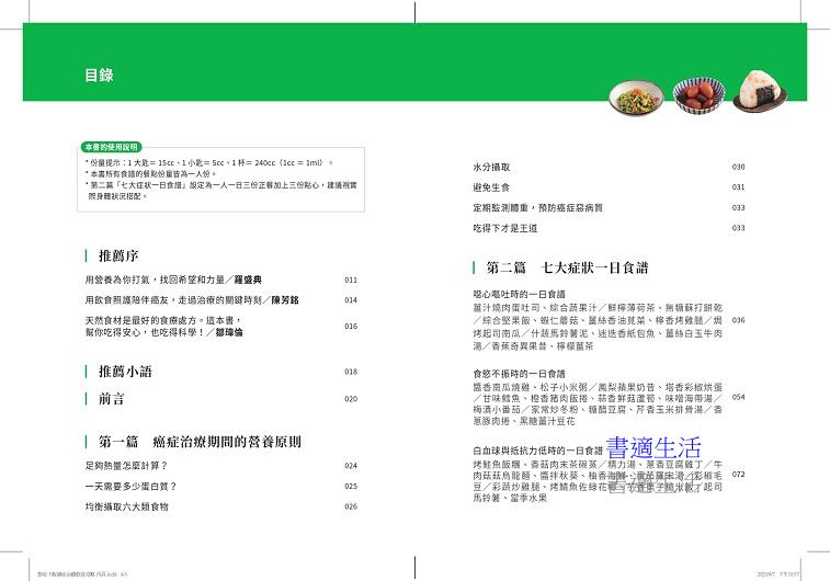 為了讓癌友吃進該有的營養,癌症希望基金會攜手深耕癌症飲食領域的權威營養師黃孟娟、朱昱、料理達人張鳳書,共同撰寫這本治療期的飲食工具書,設計適合不同副作用的一日六餐,以及可以迅速上菜的高效率蓋飯食譜,為癌友與照顧者提供示範。