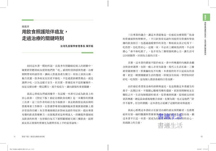 這本書結合專業與實用,為病人與家屬提供安心的飲食依據,是療程中值得信賴的陪伴。──陳威明/臺北榮民總醫院院長