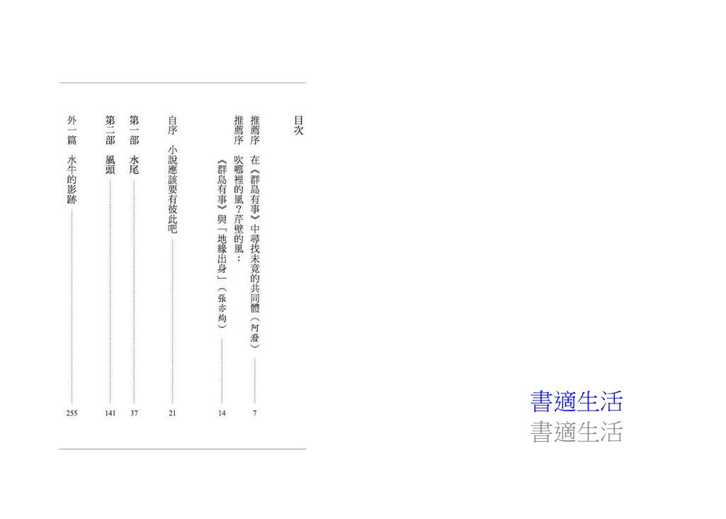 《群島有事》寫出「地緣出身」對每個人的情感與政治作用,使其成為令人動容之作。而「地緣出身」或許總不止一個。誕生時有一個,每一戀愛帶來另一個。它既使我們與他人衝突,也使我們與他人相認相愛。這是《群島有事》中,令我喜歡的原因之一。就像喜歡「芹壁的風」一樣,深深喜歡。