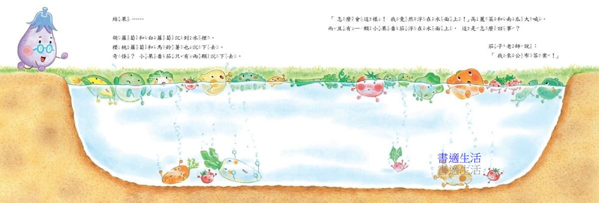 這次中屋美和還透過茄子老師提供了兩個小實驗,親子共讀後不妨一起在家裡實驗看看。親自看看蘿蔔和南瓜,哪個會沉到水裡呢?