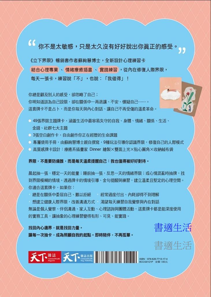 • 專屬使用手冊,由蘇絢慧博士親自撰寫,9種玩法引導你認識界限,修復自己的人際模式