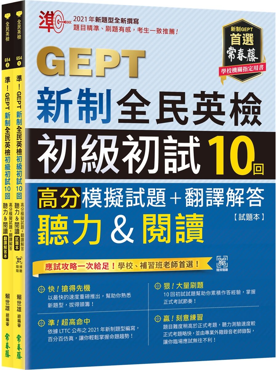 準!GEPT新制全民英檢初級初試10回高分模擬試題+翻譯解答(聽力&閱讀)
