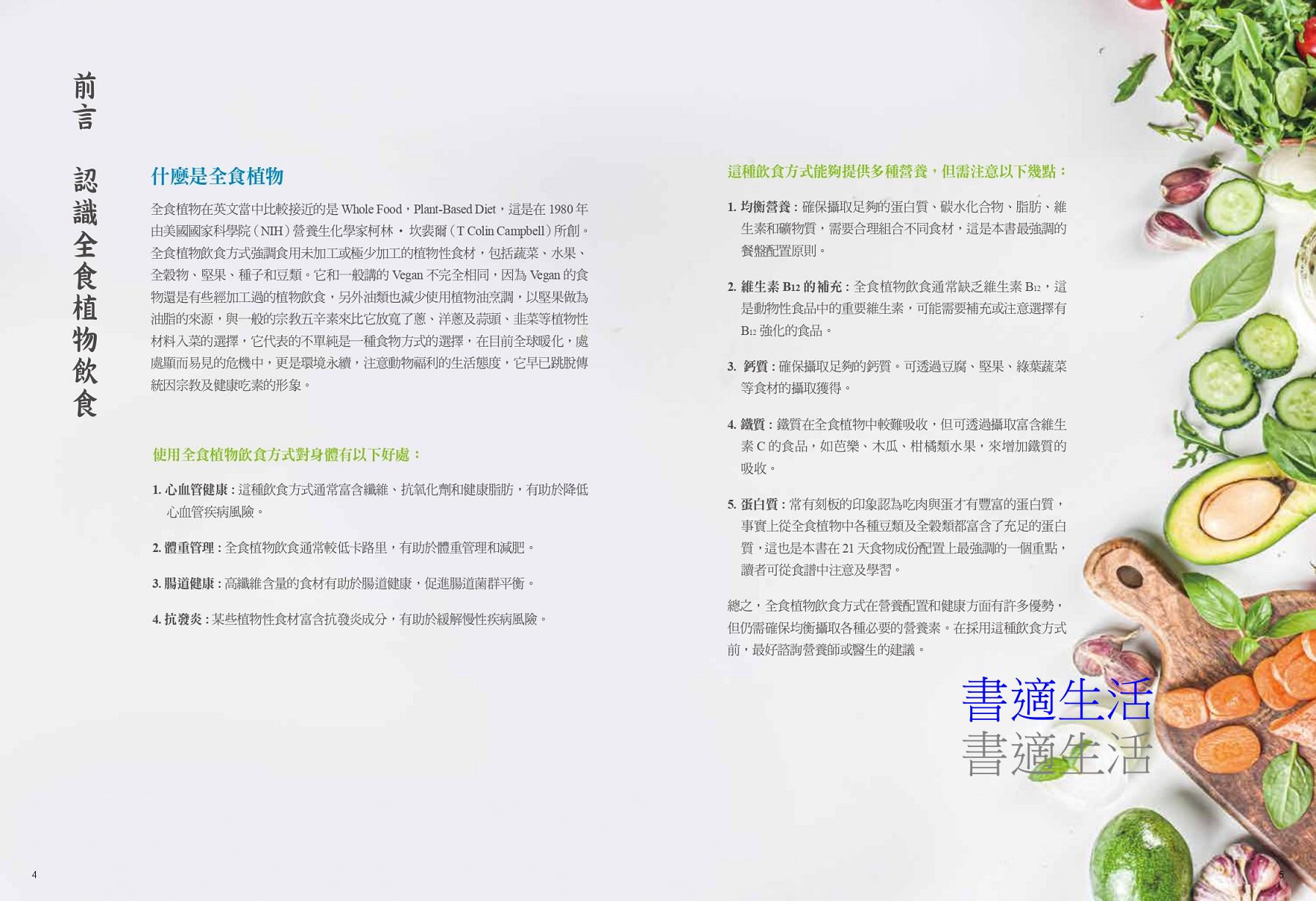 書提供42餐21天不同套餐料理食譜,讓想學習全食植物飲食的讀