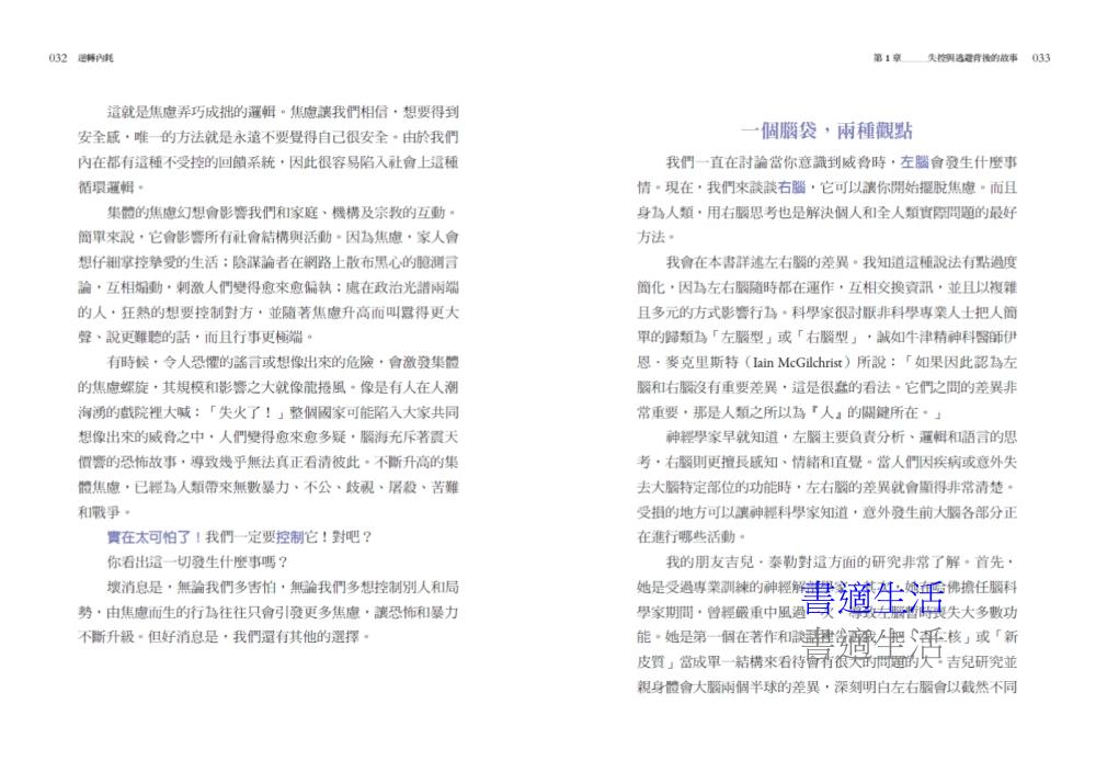 (本書)就像在你的大腦中找到一扇門,連結著恐懼與創造力。這扇門或許很小,也不常被使用……但一旦你打開這扇門,它會帶你走向超越焦慮的生活。