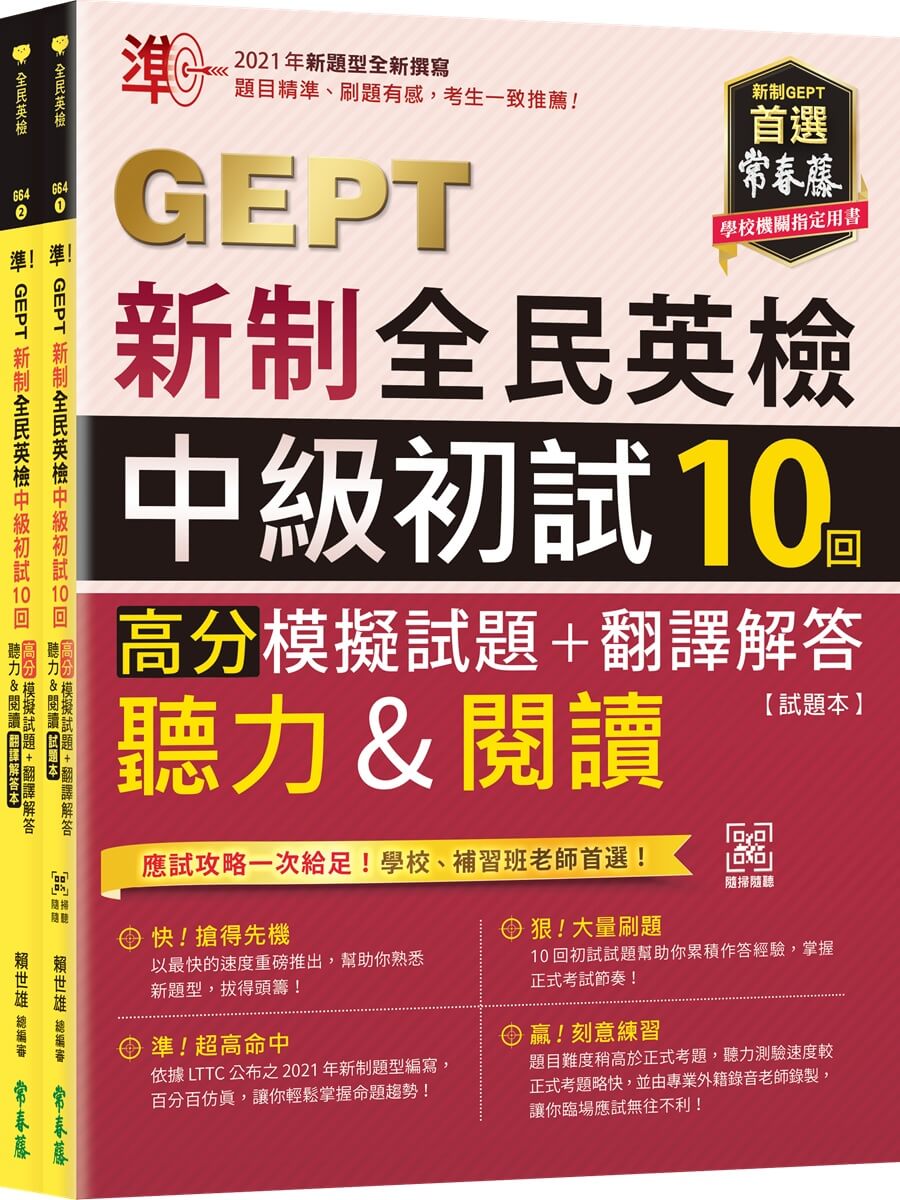 準!GEPT新制全民英檢中級初試10回高分模擬試題+翻譯解答
