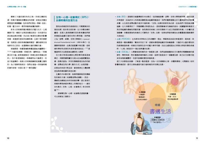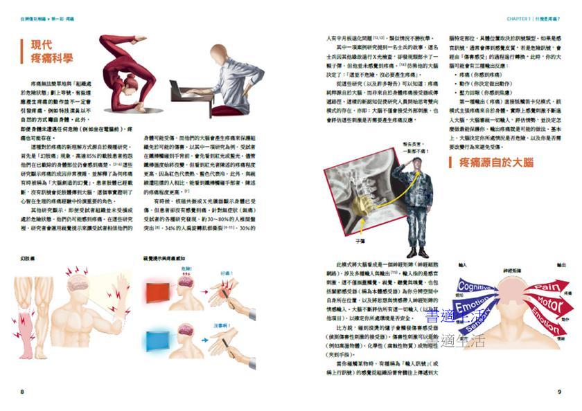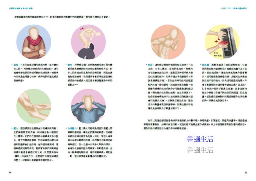 從這些和身體訊號息息相關的知識出發,本書會幫助你區分疼痛與傷害、了解疼痛的成因、分辨傷害類型,以及在「不需治療到需要立即醫療介入」的光譜中找出自身疼痛和傷害的位置。同時也解釋各種傷害的治療策略有何不同、該向哪類醫療專業人員尋求協助,並提醒你有哪些意想不到的內在外在因素可能正在加深你的疼痛,全方位協助你在複雜的舊傷及疼痛迷宮中找到方向,走向出口。