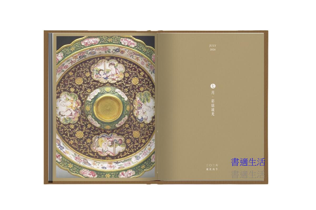 《2026故宮文物日曆》在內容上,除了生肖年關於馬的文物及其它書畫、器具、宮藏寶物外,七月及十月特別加入琺瑯器與摺扇。