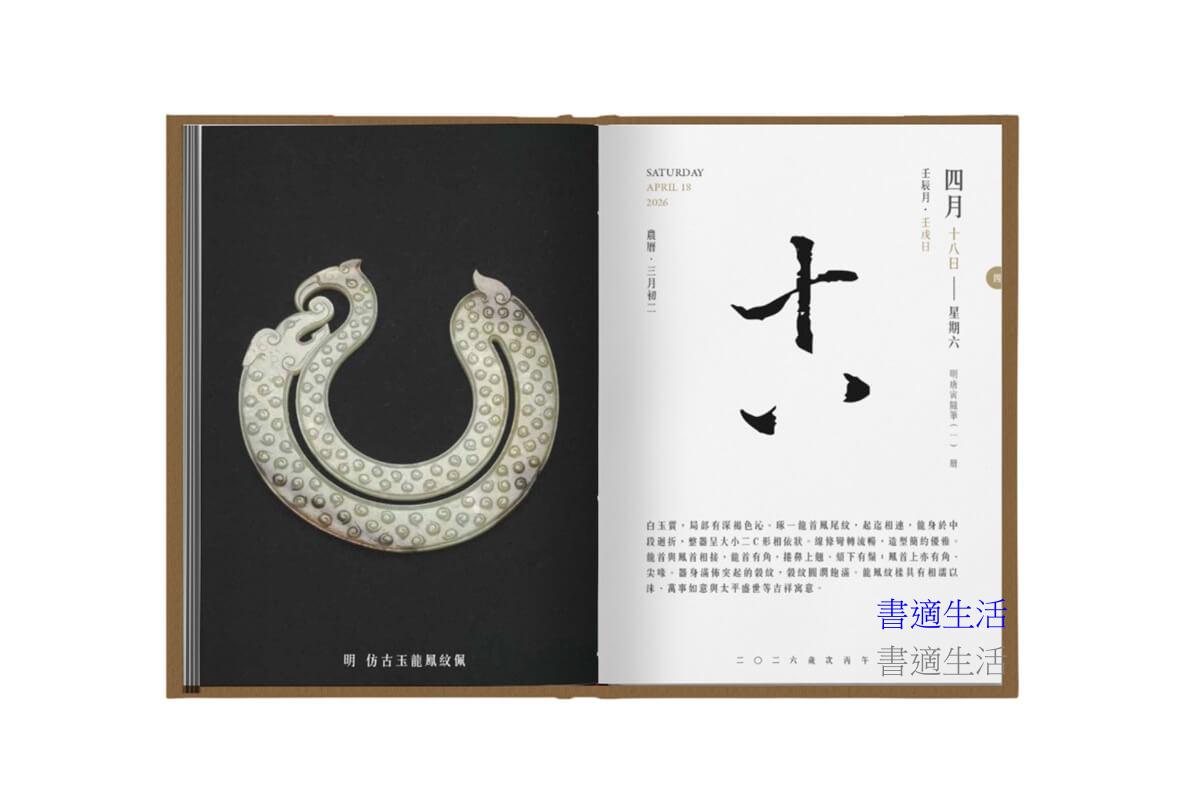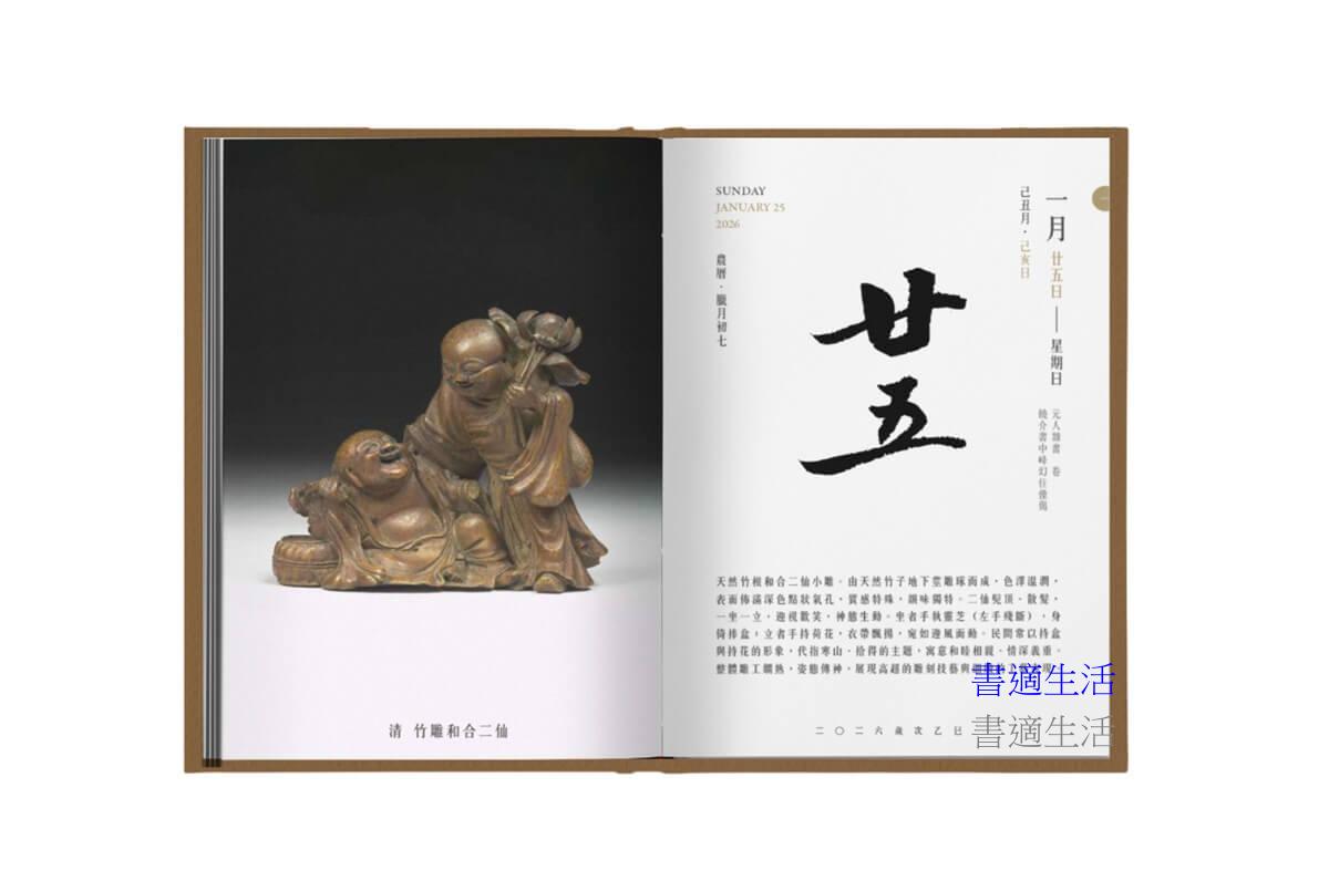 由國立故宮博物院授權、台灣時代文化藝術基金會責任編輯出版的《2026故宮文物日曆》,內容以故宮院藏文物為主,12個月,12個主題,陪伴您豐富生活,日日福氣吉祥!