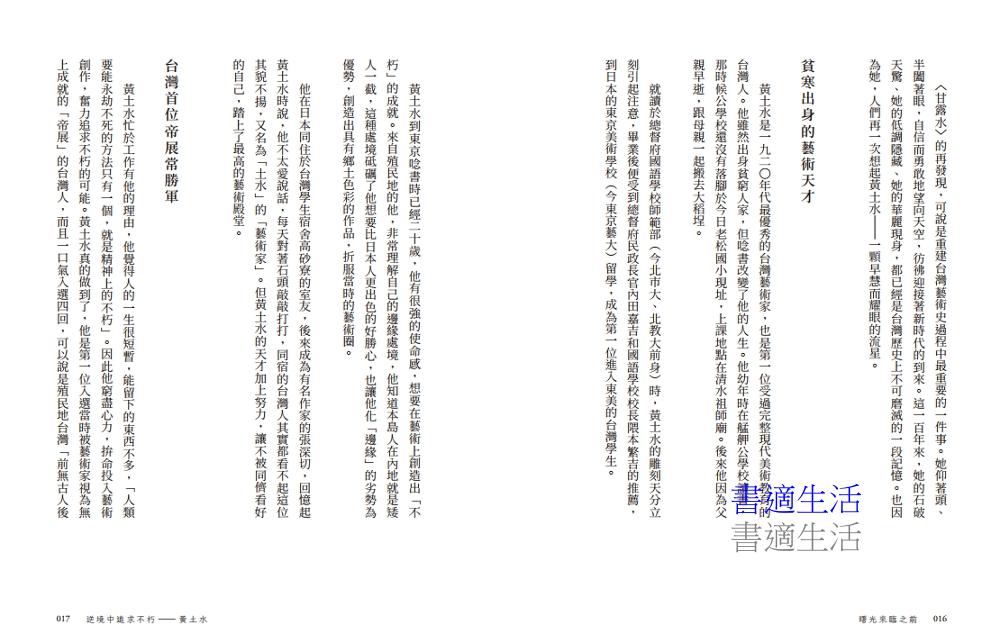 延續此熱潮,《曙光來臨之前》以簡明深邃的筆觸,刻劃台灣藝術家在歷史變革中的故事,涵蓋從日治時期至民主化後的百年風雲。書中以15位藝術家的生平與作品為主軸,刻畫他們在殖民與威權時代的掙扎與堅持,展現藝術對抗黑夜的微光力量。