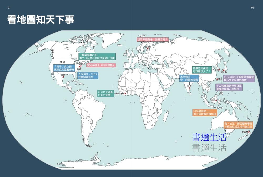 涵蓋科技、環境、政治、文化、生活等多面向焦點: