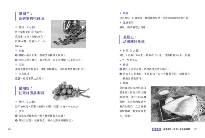 ✧ 飲食調理:強調吃對不亂補,善用天然食材與中藥材煮出養骨增肌湯、粥、茶飲。