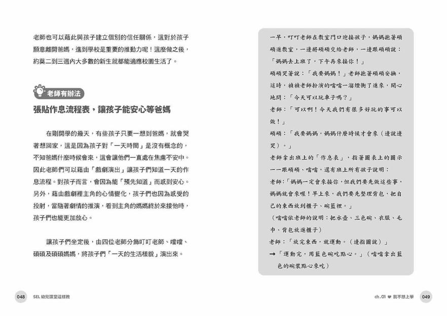 書中收錄孩子在幼兒園最常遇到的問題,並轉化為具體的教學課程: