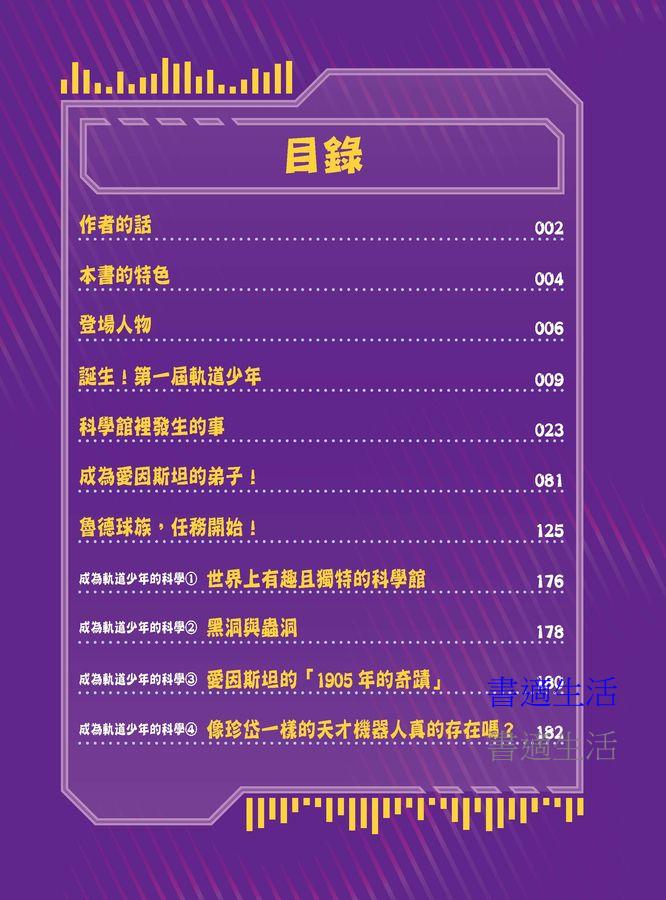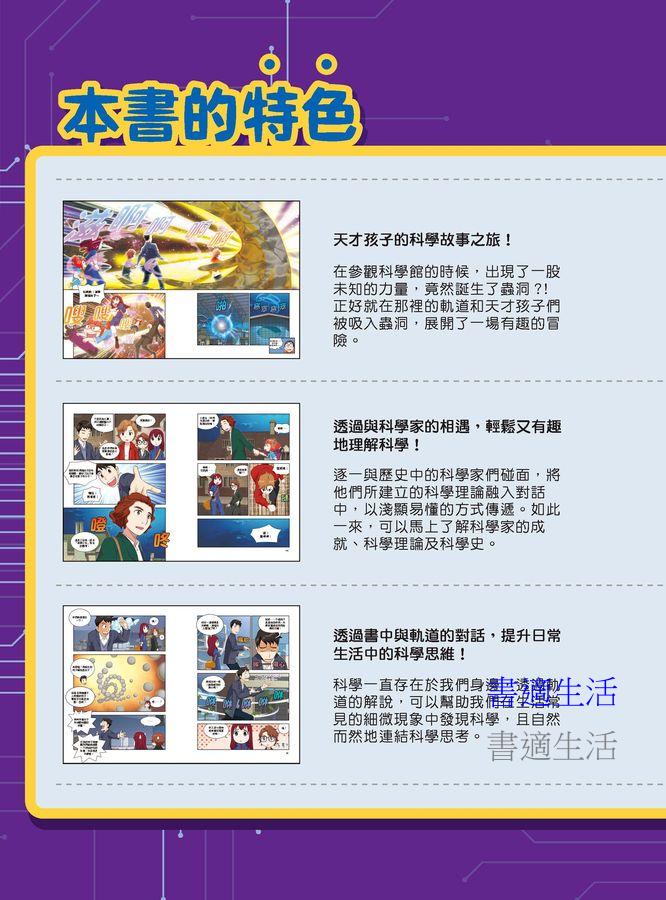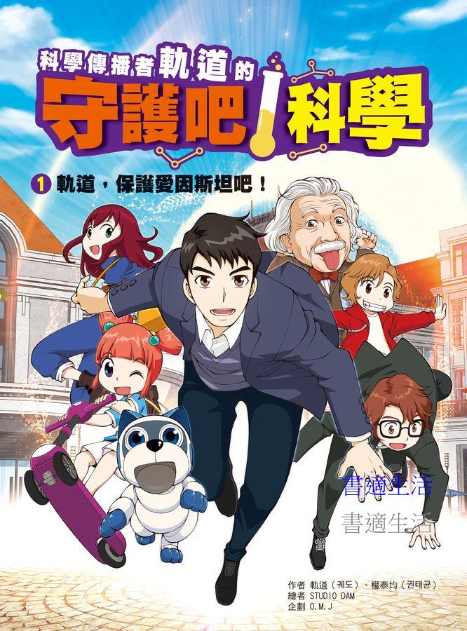 一翻開「科學傳播者軌道的守護吧!科學」,輕鬆簡明的畫風、驚險的故事,加上生動有趣的科學概念介紹,就知道這是一本讓小朋友愛不釋手的書。書中主角軌道和一群喜愛科學的小朋友因為蟲洞的吸引而穿越時空,除了幸運的碰到大科學家愛因斯坦,還陰錯陽差的成為愛因斯坦的弟子,但是大反派魯德球族虎視眈眈,企圖毀滅好不容易建立起來的科學文明,誰能阻止魯德球族的陰謀詭計呢?腦洞大開、曲折難以預料的故事情節,讓人意猶未盡捨不得放下這本書。