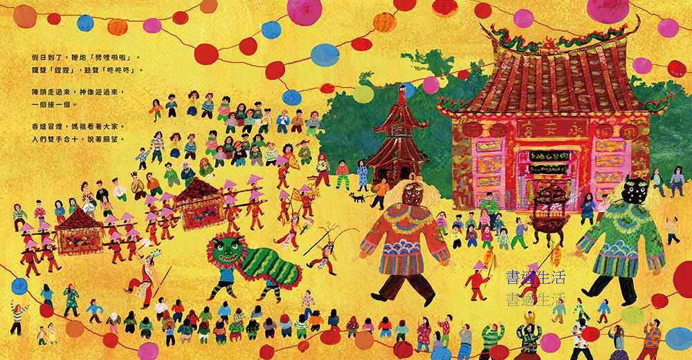 ★「阿力金吉兒的畫總是這麼繽紛、熱鬧與滿溢,充滿驚喜與細節,但是卻無損於當中的平靜。她讓每一個角色都是平等的,都一樣重要,一樣說著故事。這是一本匯聚了童年,更匯聚了台灣文化與情感的作品。」——夏夏(作家)