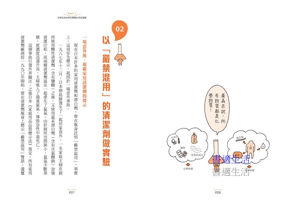 目錄: 前言 化學的一體兩面 Part 1 日常生活中的化學變化存在風險 危險的製鹽方法 以「嚴禁混用」的清潔劑做實驗 炸物的麵衣會自動引發火災? 石灰乾燥劑很危險! 清潔劑裝入鋁罐會產生化學反應 製作手工皂也有危險性 Part 2 化學引發的驚人事故 鋰離子電池起火導致墜機! 二又隧道爆炸事故 史上最嚴重的化學工廠事故 戴奧辛外洩的後果 無法控制鈉的快中子增殖反應爐 從地圖上消失的毒氣工廠之島 學校使用的藥劑也會引起化學灼傷 Part 3 化學物質是人類的敵人還是朋友? 市面上的空間消毒噴霧劑是否安全又有效? DDT殺蟲劑與人類死因第一名「瘧疾」之間的戰爭 讓人笑不出來的笑氣 《寂靜的春天》震撼的警訊 結語 參考文獻