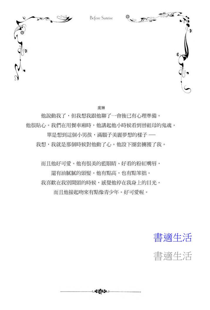 目錄: Contents 名家推薦&媒體好評 【推薦序一】愛在美好的未來──瞿友寧,導演 【推薦序二】愛情的三態──陳德政,作家 愛在黎明破曉時 演職員表 愛在日落巴黎時 演職員表 愛在午夜希臘時 演職員表