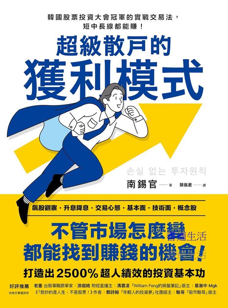 不管市場怎麼變,都能找到賺錢的機會! 打造2500%超人績效的投資基本功 短線題材怎麼追?中長期投資如何收益最大化? 投資人關注的重點問題,超級散戶為你解答── ★想抓飆股,先從觀察個股漲跌幅排行榜開始練起! ★面對聯準會降息╱升息,股市會如何變化?哪些事情要注意? ★錯過股價低點,還能進場嗎?買進時機怎麼看? ◤投資高股息公司穩賺不賠?抑或低買高賣才是股市王道? 把股息視為主要獲利手段,真的穩定嗎?讓人聞之色變的短線交易,真的碰都不該碰嗎?股市投資策略百百款,市場上捕風捉影的傳聞、似是而非的理論更是從不間斷,如何找到最適合自己的獲利方式,是投資新手永恆不變的困擾。 在韓國被譽為「超級散戶」的南錫官,全職投資逾23年,6度取得知名券商投資大會前兩名的實戰佳績!他將以豐富的資料與老道的經驗,為讀者提供實際可行的交易手法與策略思維,破解市場迷思。書中他就以巴菲特的波克夏為例,點出了當今流行的「高股息」概念,其實反而可能侵蝕投資人的資本,並重申「行情利差」、「低買高賣」才是當今所有投資人投資股票的最大目的! ◤投資大會冠軍的「短.中.長」線布局原則,一次搞懂! 股市就是世界的縮影,從中就能看見我們生活的世界會如何跟隨流行運轉。與之相對的,投資人也需把握時代精神,才能從中獲利。書中也提供了中長期投資的選股條件、短線操作的理想標的與進出場時機,甚至是可以創造行情噴發的股票類型,有效幫助讀者找出未來的投資趨勢與方向! 中長期投資三大選股條件: 1. 選擇總市值較大的中大型股中財報結構穩定的公司 2. 技術面上要出現黃金交叉 3. 從市場主力股中做選擇 有望創造噴發行情的股票類型: 1. 新時代的先鋒,時代主力股 (如三星電子、台積電,切合AI時代的半導體需求) 2. 產業轉型帶動的板塊領頭股 (行動通訊產業爆發後的遊戲股與通訊股) 3. 從內燃機汽車進入電動車時代 (2020年後飆漲的特斯拉,以及電池相關產業) 4. 話題與題材帶動的市場主力股 (疫情期間的醫藥生技、選舉時的人脈股與政策股等) 【超級散戶的肺腑之言】 ★每個人都有不同的特性。假如你的個性從容,喜歡「慢慢買進、緩緩賣出就好!」那麼短期交易就不適合你。準備不夠充分,或是經驗不足的人,就沒必要嘗試短期投資。短期投資獲利的機率,比我們想像中來得低。 ★如果你正在考慮要轉行從事全職投資,至少要先保留6個月以上的生活費,如果手頭更寬裕,可以保留1?2年的生活費,那是最理想的了。 ★只要股市還開著,交易還在繼續,獲利的機會隨時都會捲土再來!如果市場不友好,或是走勢處於悲觀狀態,不管股價再低,我們都應該先停下投資,保持觀望。 ★不要逃避或害怕「停損」。我們必須懂得停損,不讓自己陷入無法翻身的狀態,才能夠尋找下一個機會。 ★觀察股票市場與實體經濟的走勢,已不再專屬於專家,任何人都可以從全球公開的新聞和資訊,了解相關情況。想在股票上大舉獲利,就必須主動關注世界趨勢、預測利率未來的變化。