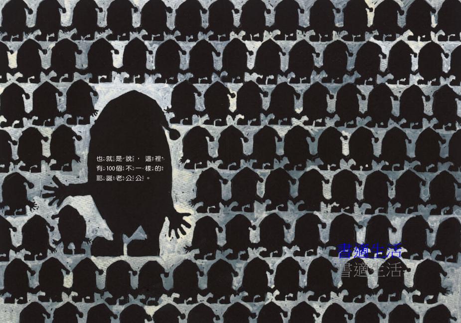 日本繪本作家谷口智則用濃彩厚塗在黑色紙張上,營造出油畫質感,巧妙的打造出100個不一樣造型的耶誕老公公。他說有一天腦中就自然浮現出「100個耶誕老公公」的想法,他一邊想著會有怎樣有趣的耶誕老公公出現,一邊讓故事發展下去。雖然故事中有些耶誕老公公沒有寫到名字,但在書後的蝴蝶頁有全員100個耶誕老公公的名字,而且他們的名字都和各自負責的工作有關呢!他希望孩子不只1次、2次、3次……每次看這本書的時候,都可以很開心的一邊找、一邊數這100個耶誕老公公。
