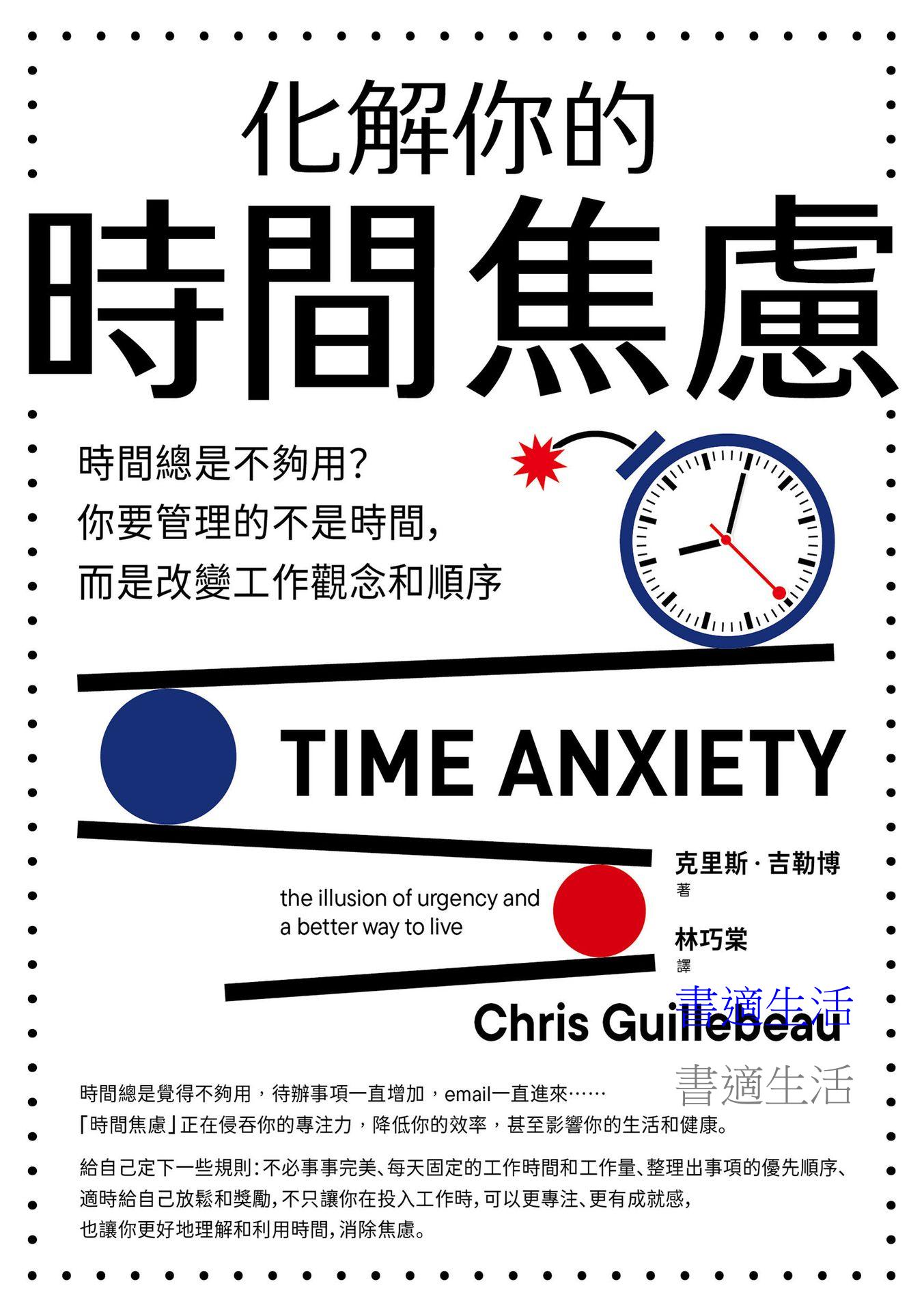 一天只有24小時,我們的精力是有限的,時間焦慮不是來自於時間的不足,而是源自於我們對自己的錯誤期望。本書作者經過自己的調查和實作,提供了化解時間焦慮的觀念和做法。例如: