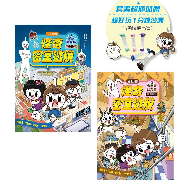 本套書分別以醫院和金字塔為背景,打造有如「生化逃脫」的緊張感,及「古文明」的神祕感,謎題結合邏輯推理、圖像解碼,氛圍奇幻、冒險,而精美逗趣的插圖,更讓孩子享受沉浸式的閱讀體驗,書末附上總複習,帶著孩子回顧重要情節與知識,增進學習效果。