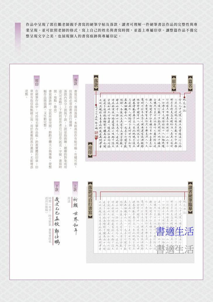 〈桃花源記〉由長年耕耘於硬筆與書法教學的郭仕鵬老師以硬筆親自書寫,筆觸乾淨俐落、結構分明。系列結合老師示範手帖、描紅臨摹,搭配180度攤平膠裝,每日不間斷練字,不僅汲取經典正能量,也能搭配落款,留下屬於你的專屬勇氣作品。