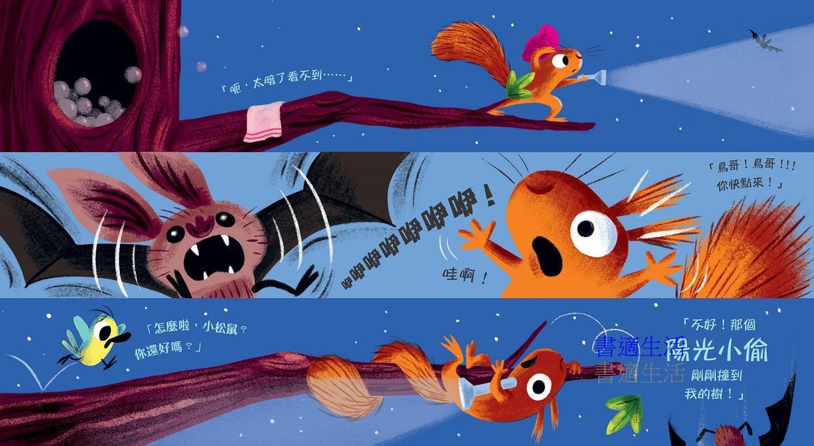 透過誓言捉到陽光小偷的小松鼠和鳥哥的逗趣對話與情節,