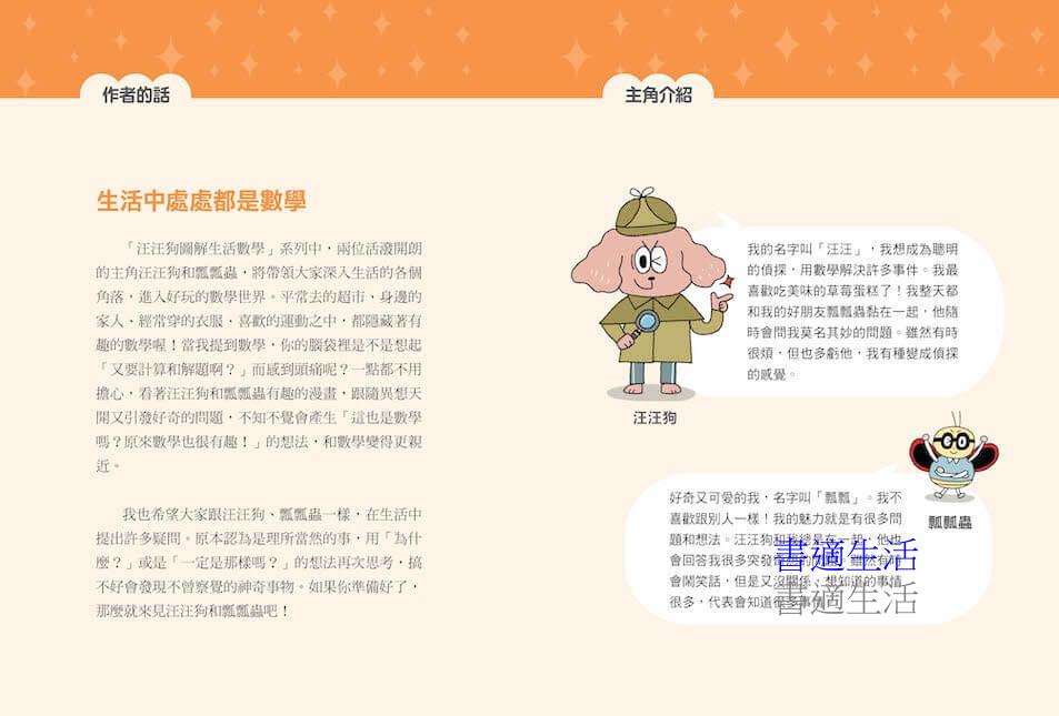 「汪汪狗圖解生活數學」不僅是數學啟蒙書,閱讀這個系列更是一場「跨領域思考」的初體驗;它巧妙的將數學邏輯與生活情境、語言表達及圖像藝術結合,讓孩子理解數學並非獨立學科,而是解決真實問題的工具。這種整合性學習,培養的不只是計算能力,更是面對複雜世界所需的系統性思維與創造力。出版社在翻譯跟畫面呈現很用心,內容方面做了在地化的轉譯(圖中出現中華民國的國旗!),並且附加注音,讓小讀者閱讀理解游刃有餘。