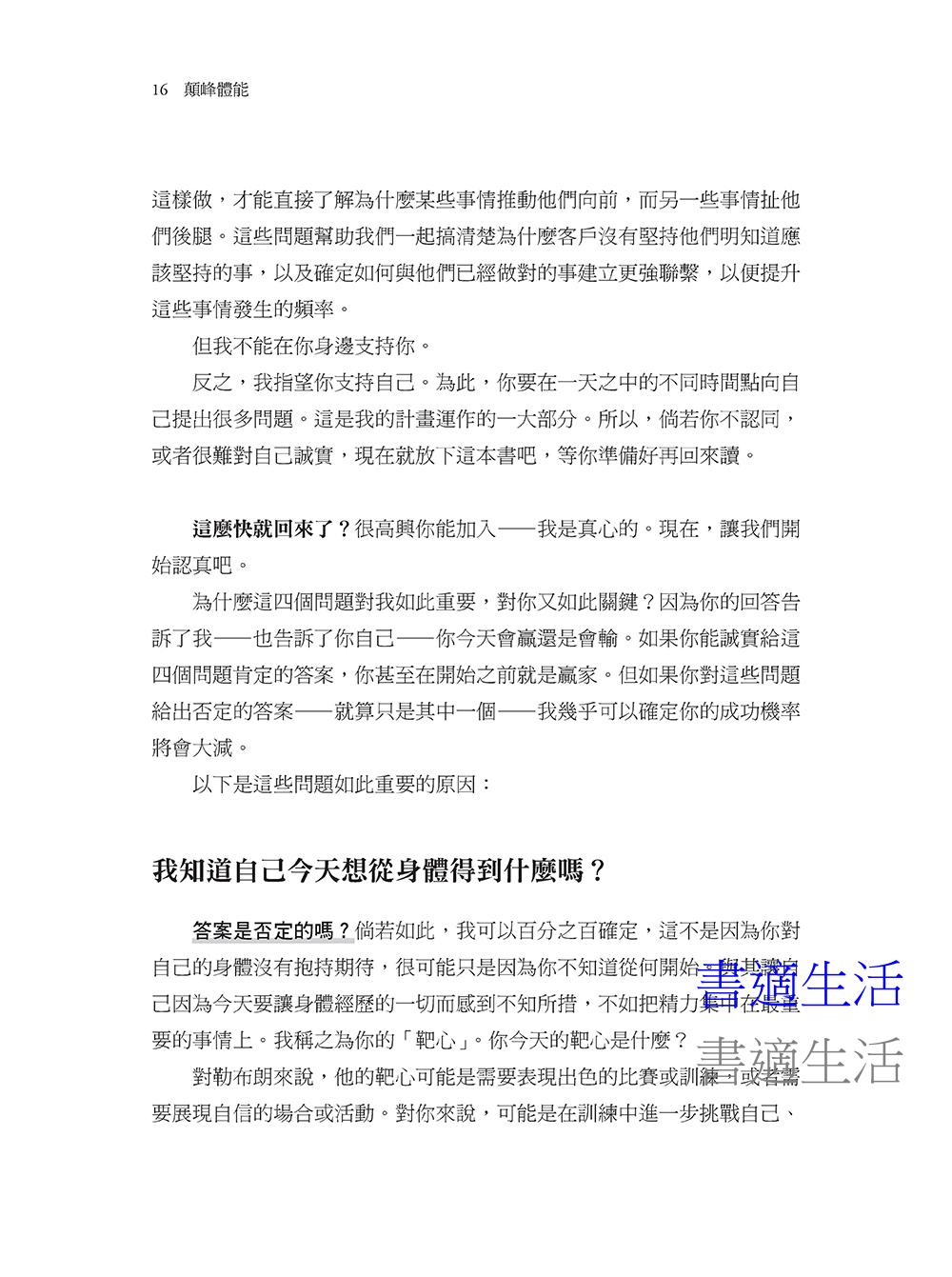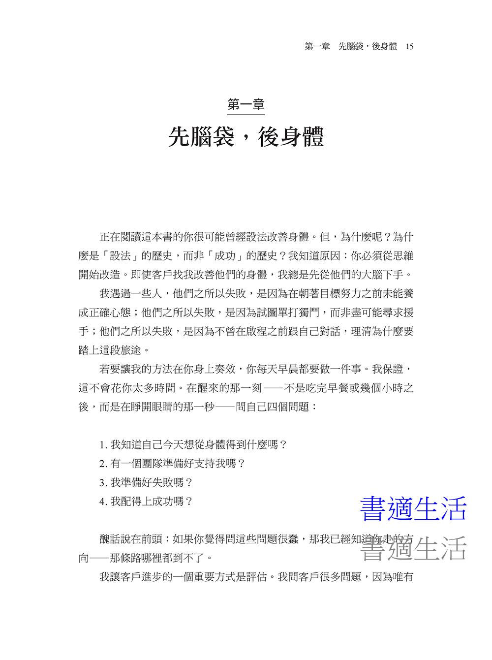 《巔峰體能》不只是為精英運動員設計的健康計劃,它更是一套每個人都能掌握的全能策略。曼西亞斯將他幫助勒布朗.詹姆斯突破極限的成功方法提煉成「三大支柱」與「四步驟策略」,適用於任何想要提升健康、表現和生活品質的人。
