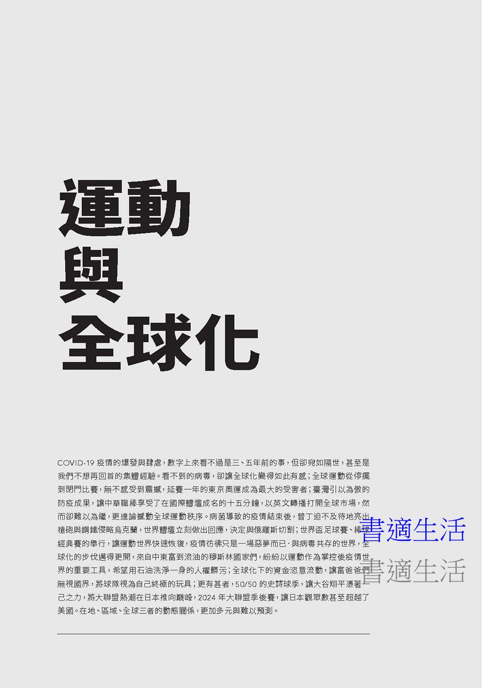 這不僅是一本談論比賽勝負的書,而是從球場延伸至文化、政治、媒體的運動批判之作。從東京奧運的激情狂熱,到亞洲籃球賽場的困境;從國族認同的運動敘事,到「洋將」與本土球員的競合關係——這本書揭示了我們習以為常的運動觀念背後,往往隱藏著複雜的權力運作與社會結構。