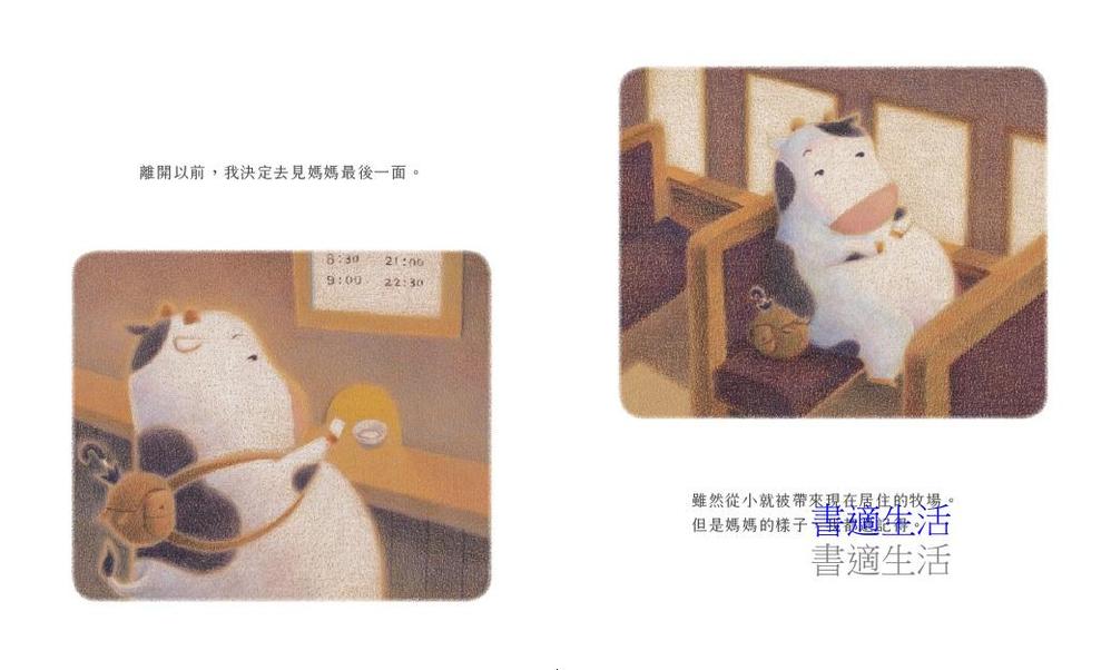 《在我被吃掉以前》故事從身為食用牛的小牛,踏上跟媽媽道別的旅程開始,全書以色鉛筆繪製,圓圓胖胖的小牛、溫柔的筆觸與氛圍,卻帶出一個令人震撼的懸念的結局?