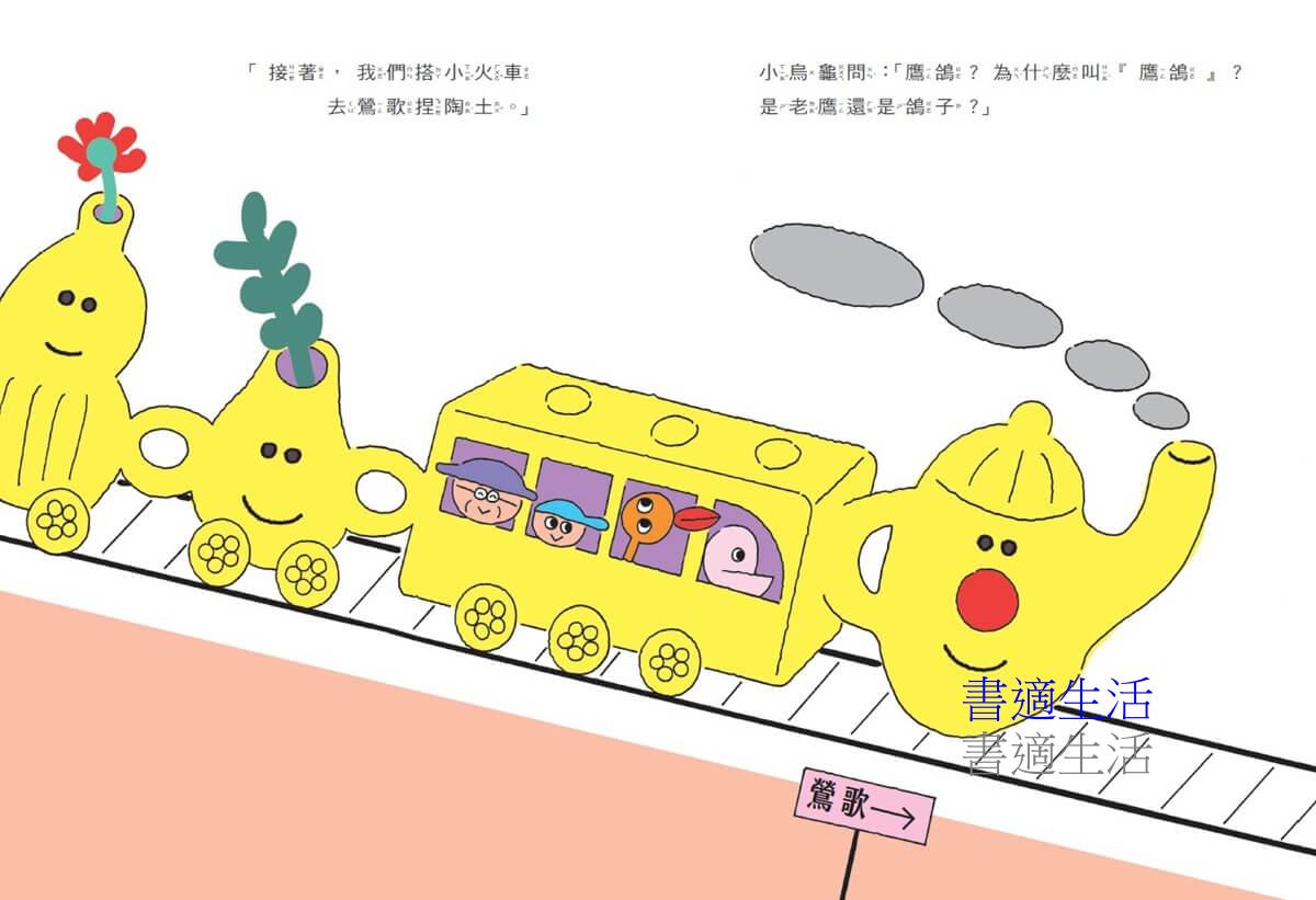 小烏龜從遠方回來,烏龜爺爺帶著他舊地重遊、拜訪故友,展開一場特別的旅行。他們坐上火車、纜車、捷運和小船——到桃園野餐、鶯歌捏陶、貓空喝茶、劍潭逛夜市、金瓜石挖寶,一路玩到龜山島……聽烏龜爺爺說出一個又一個關於地名的奇想故事。這不只是一次旅行,也是一趟充滿想像與親情的冒險,藏著濃濃的祖孫情!