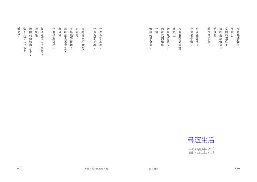 在時代的洪流中,每個人都必須做出選擇,有些選擇或許使他們的生命有如燦爛的煙火,在令人驚詫愕然之餘,卻又在下一刻悵然它的短暫。即使如此倏忽即逝,但這已是一條竭盡這個五四世代所能的、上下求索而出的漫漫長路。