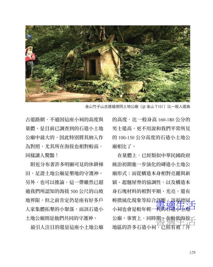 身為專業建築師的作者,經過多年踏查,不但記錄這些散落在古道上的歷史珍寶,更以建築專業的角度,闡述這些石造小廟的形制演變,歸納出相似處與獨特性。