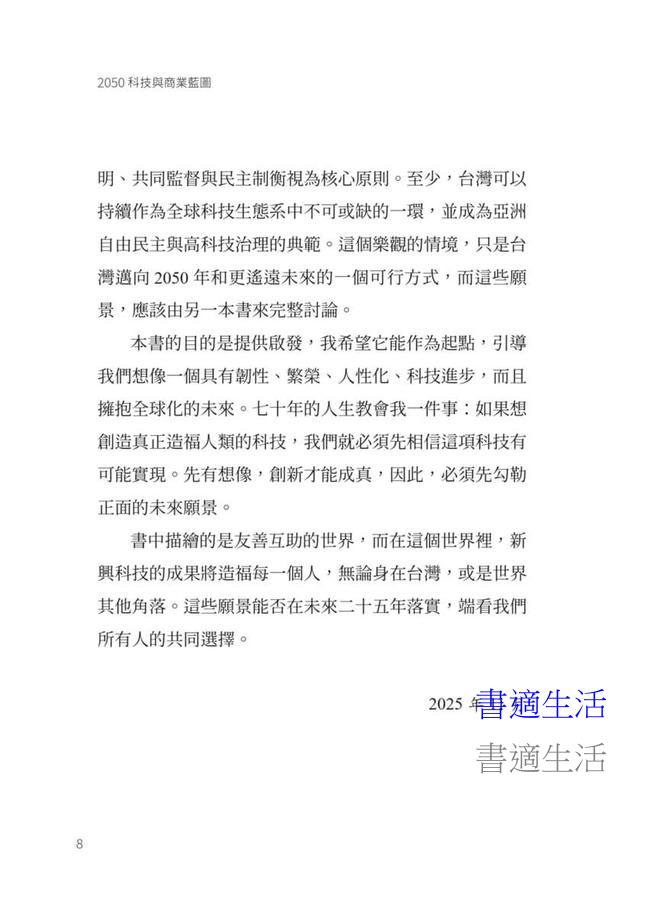 此外,凱文.凱利也分析美國與中國、印度等科技強國在這些技術上的發展情況,並預測全球的商業布局。這不僅是一本未來學預言書,更是一份企業家、經理人與投資人的行動指南,啟發我們以樂觀與創造力,共同塑造人類的2050。