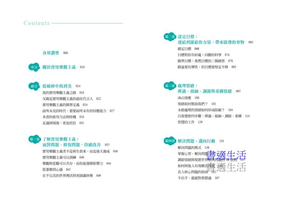 必讀佳作,書中提到各種方法,幫助我們度過挑戰,擁抱身邊的所有可能性。 作者告訴我們,實用樂觀主義是我們可以鍛鍊、可以持續強化的肌肉——絕對可以讓我們的人生改觀。