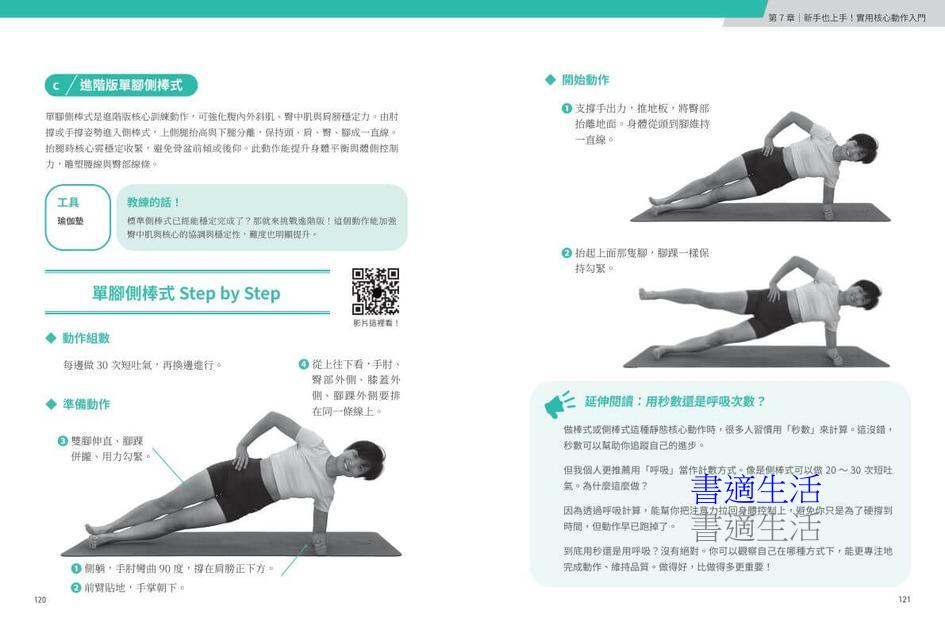 《40+ 核心這樣練》一次破解 40+ 最常犯的 7 大運動迷思,搭配獨家「3211 訓練流程」,每天只要 10 分鐘,從放鬆、伸展、呼吸到核心啟動,安全找回穩定核心力。