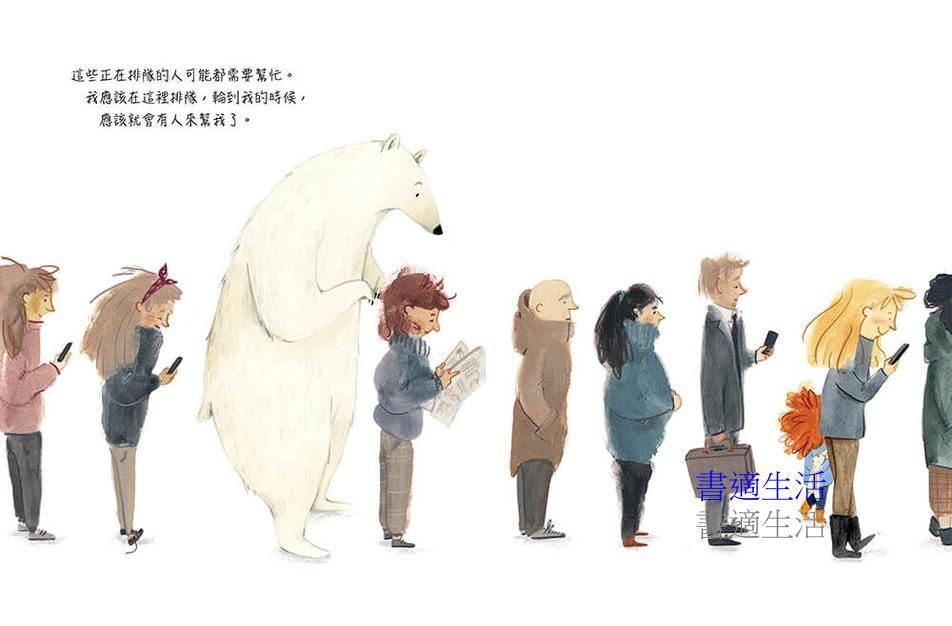 一隻熊迷失在水泥叢林城市裡,他想找人幫忙找路回家,卻發現城市裡的人忙得沒時間抬頭看他一眼。他在城市裡四處遊走,看到有人排隊就跟著排,結果是排隊買咖啡的,熊只得到了一杯難喝的咖啡;熊再到旅客服務中心想尋求協助,卻只拿到一張根本找不到北極的地圖。這一切的經歷,在在顯示出熊在人類世界裡的無助與無力,也隱喻著人類掌控著環境、卻無視熊的求助,冷漠地看著熊在險峻的環境裡自生自滅。