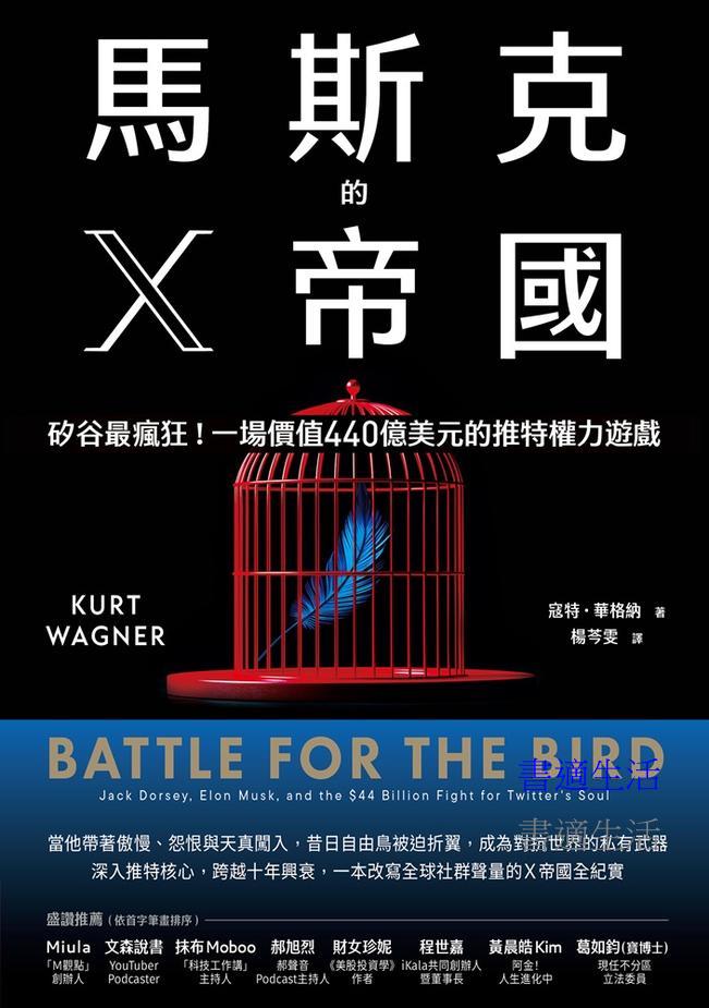 在《馬斯克的X帝國》中,寇特.華格納講述了一個扣人心弦的故事,關於控制推特這家全球最具影響力公司的高風險鬥爭,以及馬斯克、推特董事會與傑克.多西之間瘋狂、令人難以置信且混亂的戰役,而這一切都讓言論自由的概念懸於一線。