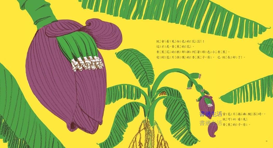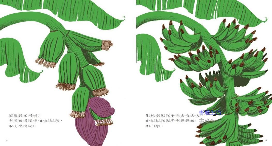從發現冰過的香蕉會變黑開始,探討香蕉變黑的原因,循著線索,帶領孩子了解香蕉的生長環境,它是怎麼樣開花結果,分辨哪一種外觀的香蕉吃起來最香甜可口,以及香蕉從綠色外皮變成黃色外皮的差異和原因,透過可愛的繪圖和問題追索的方式認識香蕉。