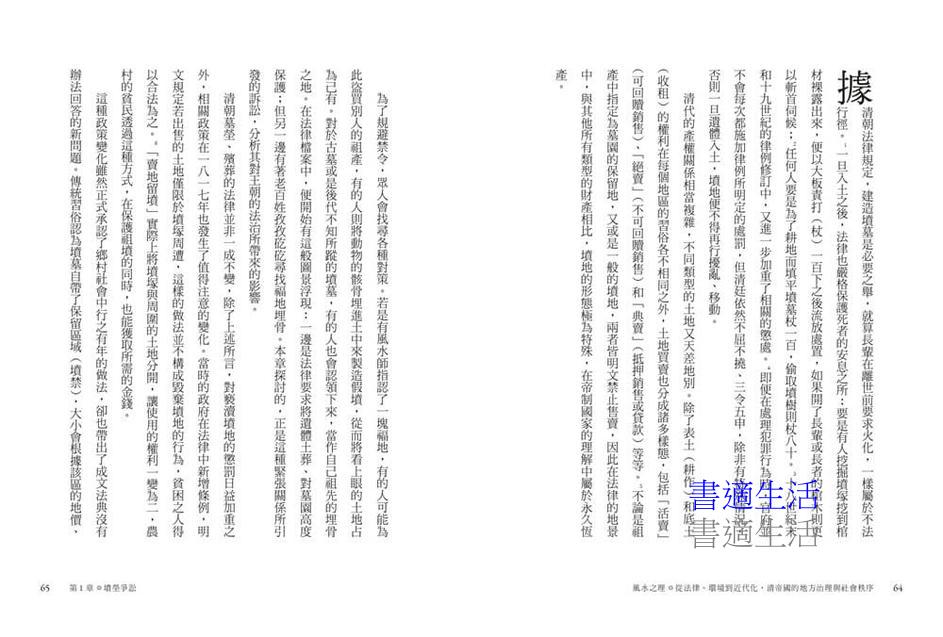 對於「人如何理解空間」的問題,這本書檢視了風水所扮演的角色,是清代法律史的傑作。