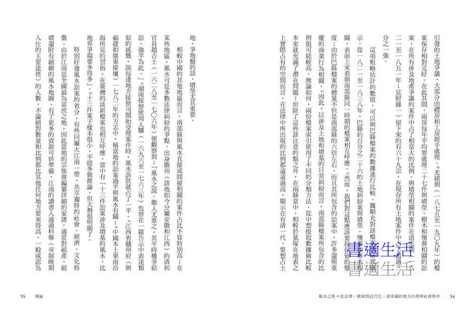 一直到二十世紀後半葉,人類學視角的引入和對西方中心論的反思,才在很大的程度上賦與了風水研究新的方向……(這本書)可以說是對這個新方向的繼承和開拓……最有特色的核心史料是清代的縣衙檔案,尤其是其中的訴訟檔案。這就使得風水研究與法律史正面相遇,給兩者都帶來了新的思考。