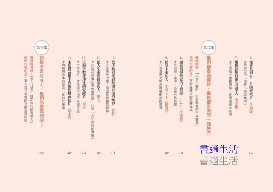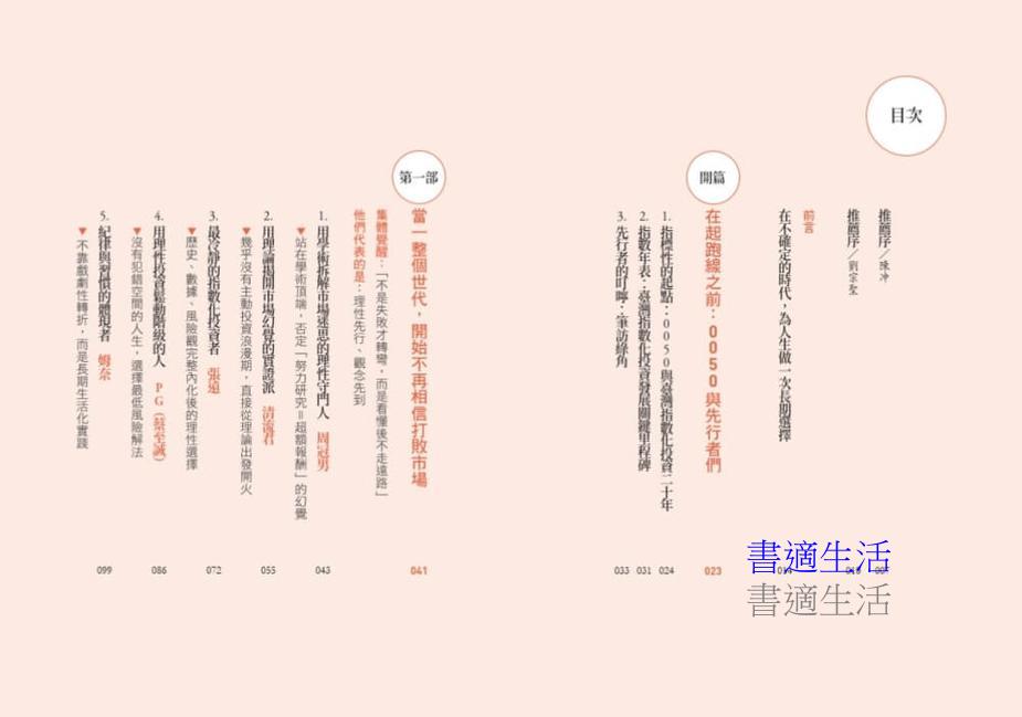 臺灣的指數化投資,自綠角推廣以來,已有15年,這本書記錄下這十多年來諸多推廣指數投資的知名人士的耕耘紀錄,就像是一本臺灣版的「柏格頭」一般,讓讀者能夠清楚了解到,臺灣這一群持續在推廣指數投資的KOL們,是如何走上這條指數投資的道路,以及實行投資時的感悟和經驗分享;也提供臺灣投資人一條更省力、省時,且容易投資成功的理財之道。
