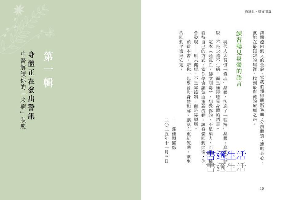這本書是看待自己的新方式!無論你是「未病」但不時有點小困擾的亞健康族群;或健檢紅字頻傳,甚至正苦於慢性病的「已病」者;或想打好基礎,避免未來生病的人,都能找到與身體和解的方法。