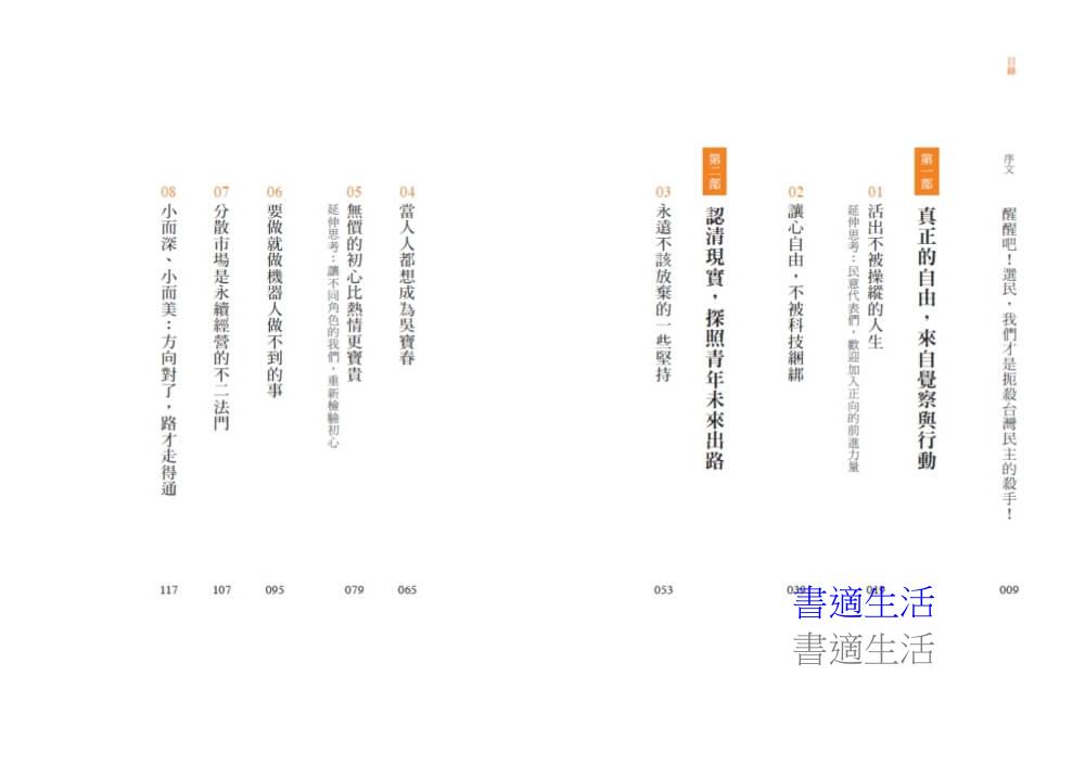 如果你曾無力、困惑,卻始終不願放棄對台灣未來更好的期盼,你一點也不孤單。我們都一樣,在黑暗中摸索前進,讓我們釐清方向,一一爬梳實踐之道,努力讓自己成為照亮改變道路的那一盞微光。